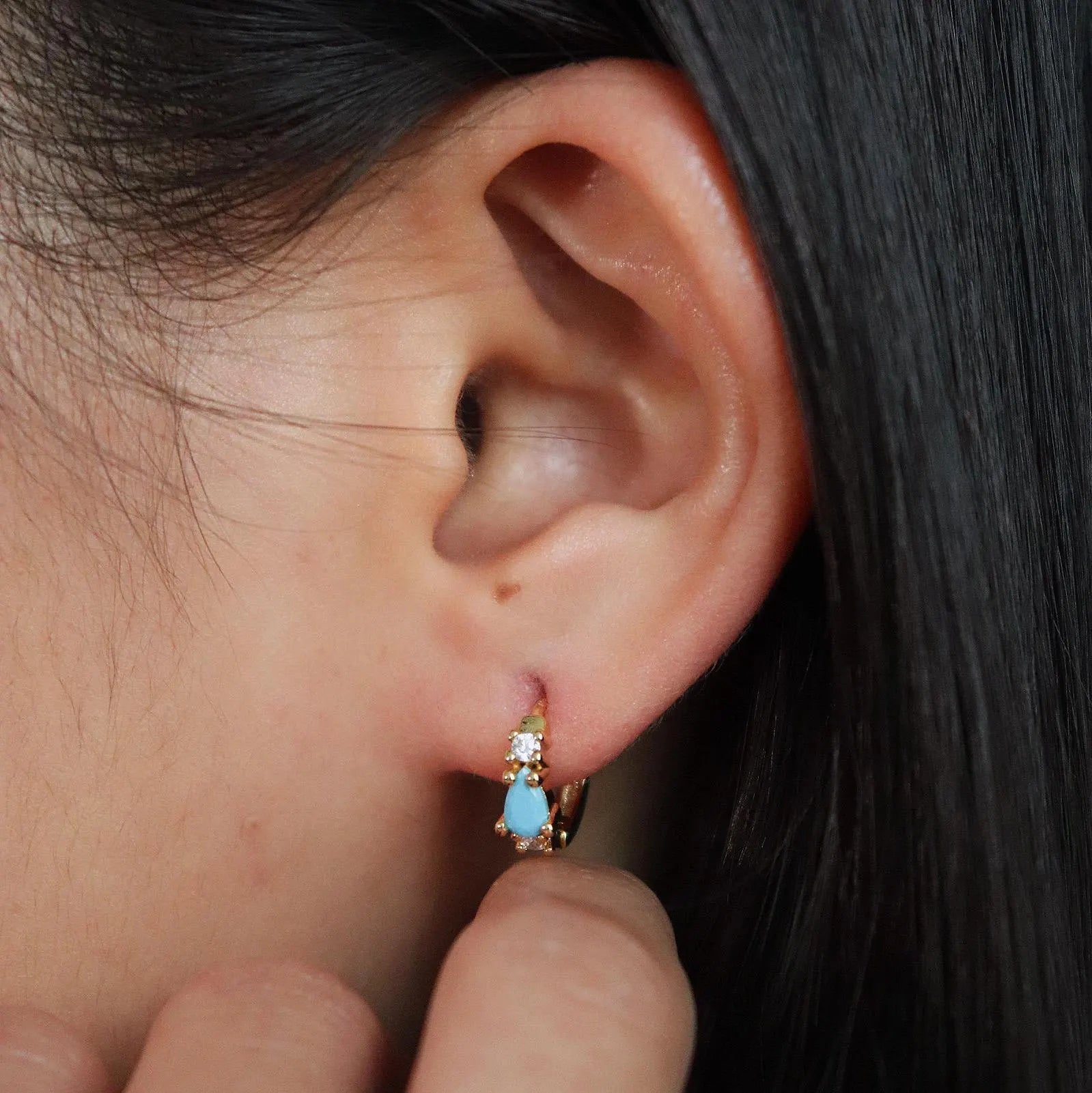 Dainty Turquoise Huggie Hoop Earrings,
