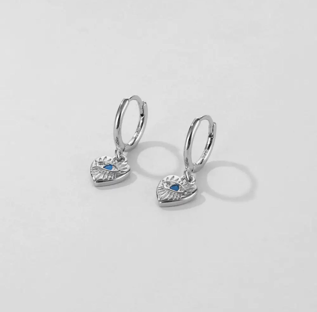 Dangle Heart Charm Evil Eye Earring